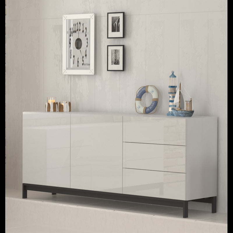 Metis 170 sideboard with pedestal - 2 doors + 3 drawers - Glossy White