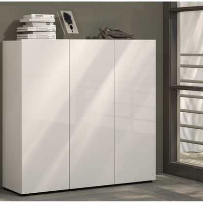 Available in glossy white or grey, the cabinet stands out for its handle-free structure, which gives it a clean and modern look. Equipped with 3 doors and 10 internal shelves, it offers ample space to organize shoes in an orderly manner and protected from dust and humidity.