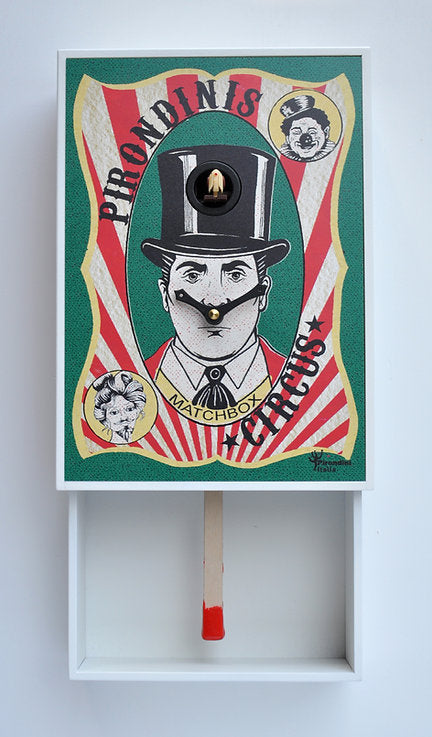 Il designer Marco Bedognetti reinterpreta la scatola di fiammiferi per una nuova collezione di orologi a cucù, "MATCHBOX". L'artista Nicole Da Porto, ispirandosi alle pubblicità degli spettacoli circensi, ha creato quattro temi grafici: i "PirondiniS Circus".