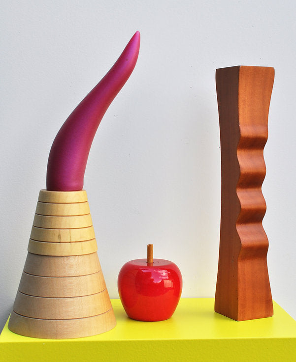 Realizzato in MDF laccato, acero massello tornito, pero tornito e intagliato a mano e cornetto in resina. le varie parti sono trattenute da magneti e posizionabili a piacere.