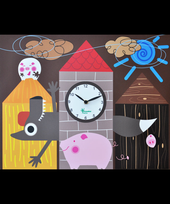Originale orologio da parete che rallegrerà la cameretta dei più piccini ricordandogli la favola de I 3 porcellini!