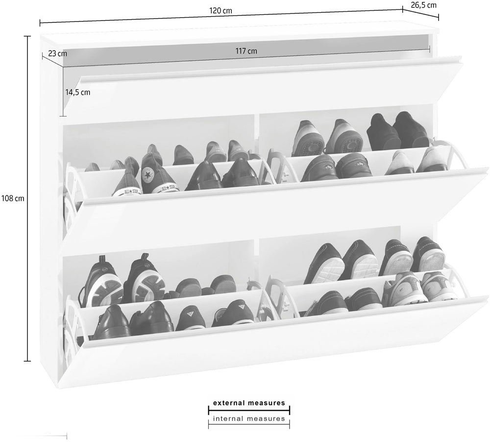 Scarpiera Magic 120 - 2 ante + 1 ribalta - Bianco Lucido