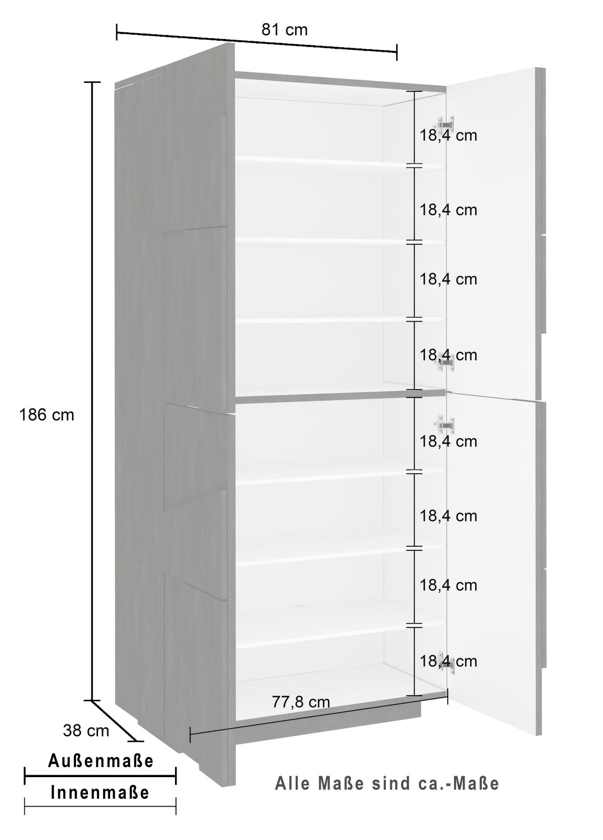 È dotata di 4 ante battenti rese particolari da un motivo geometrico in rilievo sulla superficie che rendono la scarpiera del tutto moderna.